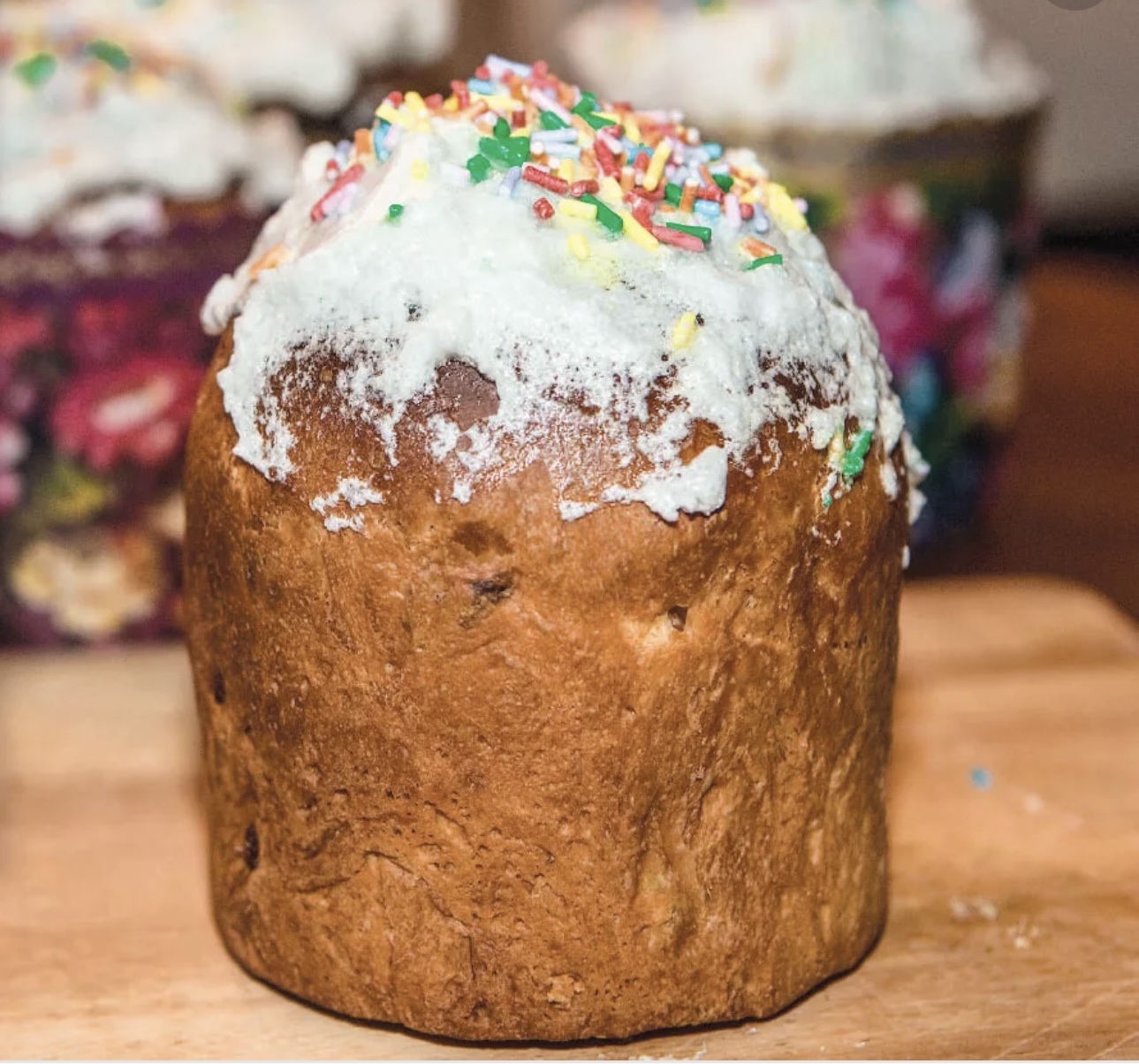 Состав: мука, цукаты, масло сливочное, изюм, вода, сахар, яйцо, молоко, дрожжи, ванилин, соль, посыпка, глазурь помадка.